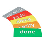- Überschriften = backlog, to do, doing, verify und done